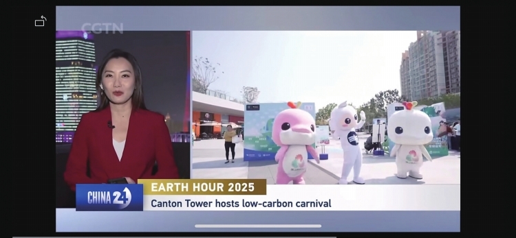 图为中央广播电视总台CGTN(中国国际电视台)刊播地球一小时主题活动相关报道。