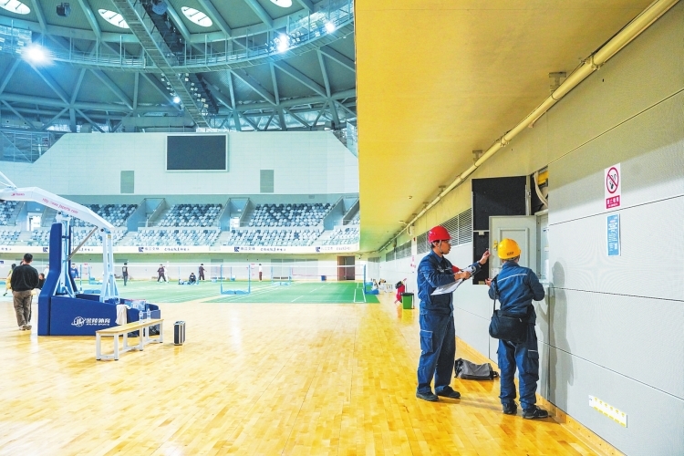 场馆好不好,主要看灯光。专业赛事中,体育照明要求非常严苛。既要照度够、防眩光,又要亮度均匀,“我们针对手球场馆对灯光要求,深度对接场馆照明运维方,了解各灯光设备涉及照度、照度均匀度、眩光指数、光源显色性等方面的参数信息和供电需求,因地制宜制定个性化保供电方案,确保灯光可靠性。”王仁郁说。