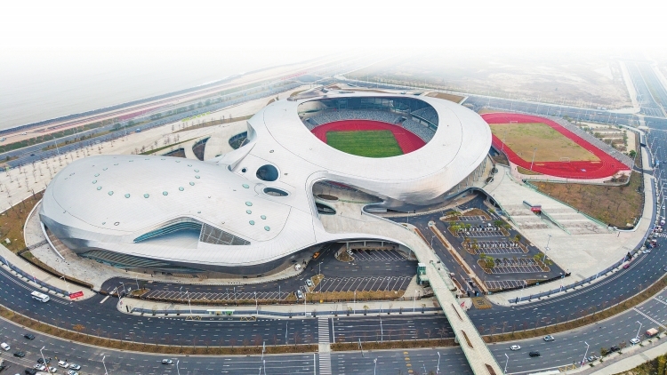 粤东地区最大综合体育场馆——汕头体育中心体育馆将承接举办十五运会女子手球项目。图为场馆外景。 吴子琳 摄